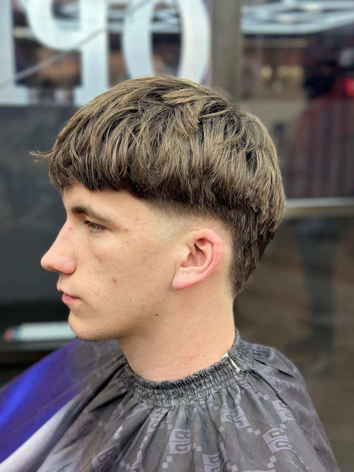 Medium Side Swept Style, Short Textured French Crop with Taper Fade